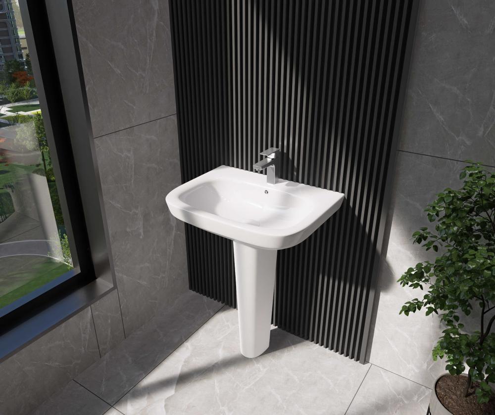 مغسلة ليشبوني 3025 تتميز بتصميم عمودي يحقق أقصى استفادة من المساحة المتاحة، مما يمنحك تجربة استخدام مريحة مع الحفاظ على مظهر أنيق ومرتب. كما أن هذا التصميم يساعد في إخفاء الأنابيب والمواسير، مما يمنح حمامك مظهراً نظيفاً ومنظماً.